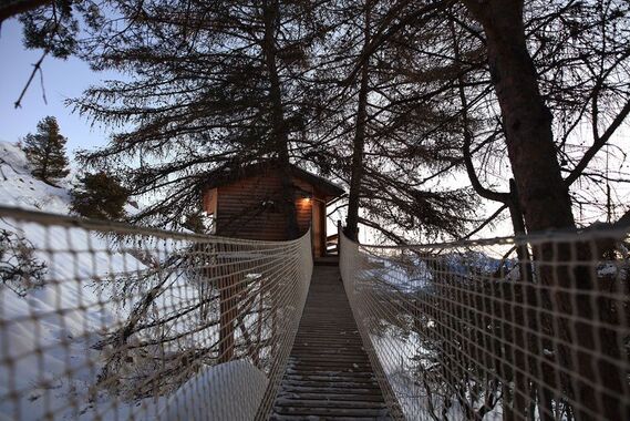 Et la fameuse cabane perchée! Un petit bijou de confort accessible par une jolie passerelle. Rien n'y manque pour qu'on se sente chez soi, avec en prime la petite bouteille pour l'apéro. S'en parler de la vue sur la région gapençaise. La nuit, nul besoin de tirer les rideaux pour jouir des changements de lumière, et profiter du lever de soleil. Avec le chant des oiseaux pour compagnie.